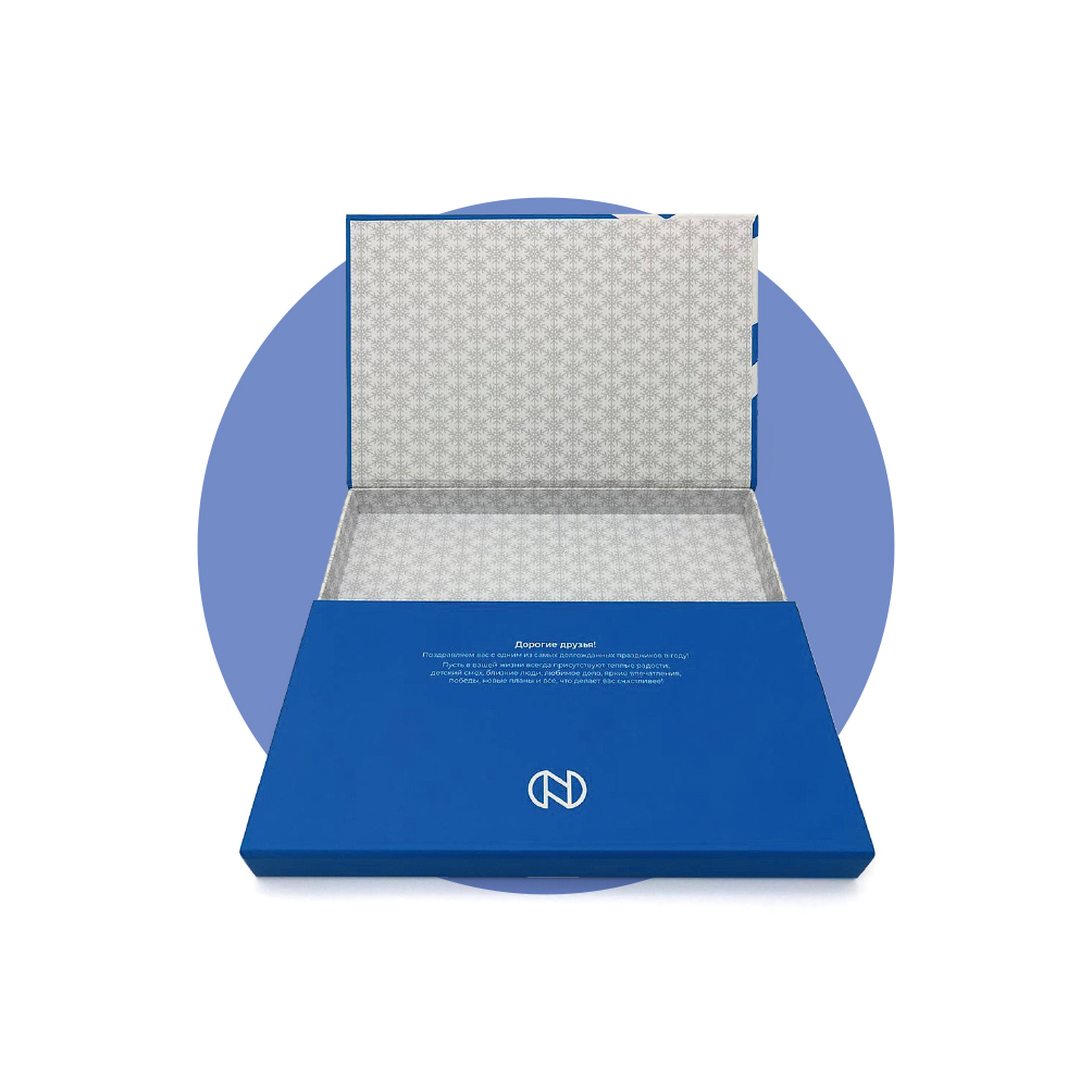 Классическое исполнение: два жестких лотка, обтянутых лайнером. Крышка может быть на полную высоту коробки.